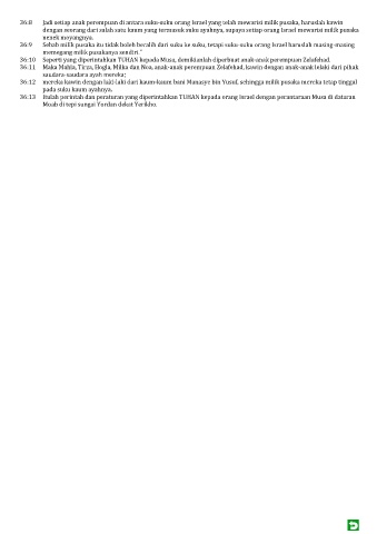 36:9 Sebab milik pusaka itu tidak boleh beralih dari suku ke suku, tetapi suku-suku orang Israel haruslah masing-masing