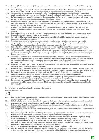 19:28 Berkatalah ia kepada perempuan itu: "Bangunlah, marilah kita pergi." Tetapi tidak ada jawabnya. Lalu