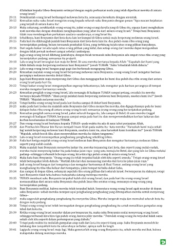 20:15 Pada hari itu dihitunglah jumlah bani Benyamin dari kota-kota lain itu: dua puluh enam ribu orang yang