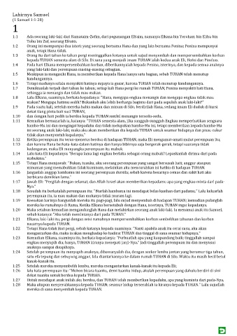 1:17 Jawab Eli: "Pergilah dengan selamat, dan Allah Israel akan memberikan kepadamu apa yang engkau minta dari pada-