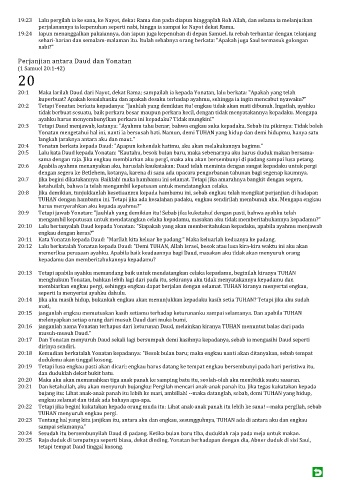 20:17 Dan Yonatan menyuruh Daud sekali lagi bersumpah demi kasihnya kepadanya, sebab ia mengasihi Daud seperti