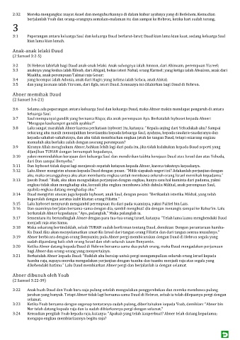 3:1 Peperangan antara keluarga Saul dan keluarga Daud berlarut-larut; Daud kian lama kian kuat, sedang keluarga Saul