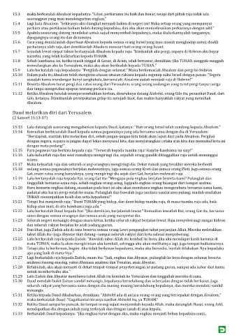 15:23 Seluruh negeri menangis dengan suara keras, ketika seluruh rakyat berjalan lewat. Raja menyeberangi sungai Kidron