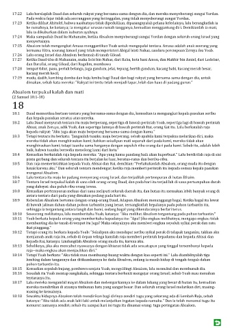 17:25 Absalom telah mengangkat Amasa menggantikan Yoab untuk mengepalai tentara. Amasa adalah anak seorang yang