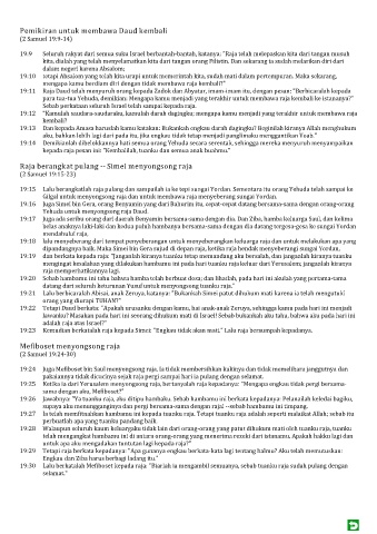 19:30 Lalu berkatalah Mefiboset kepada raja: "Biarlah ia mengambil semuanya, sebab tuanku raja sudah pulang dengan
