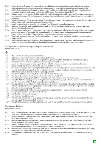 4:19 Geber bin Uri di tanah Gilead memegang tanah Sihon, raja orang Amori, dan tanah Og, raja Basan; dan dialah satu-