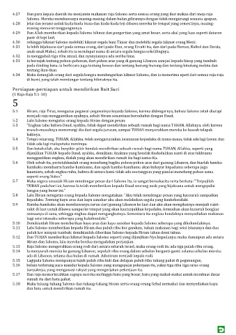 5:1 Hiram, raja Tirus, mengutus pegawai-pegawainya kepada Salomo, karena didengarnya, bahwa Salomo telah diurapi