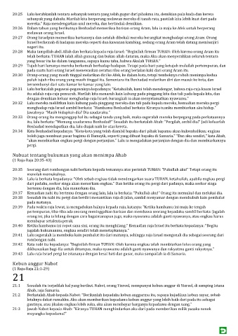 21:3 Jawab Nabot kepada Ahab: "Kiranya TUHAN menghindarkan aku dari pada memberikan milik pusaka nenek