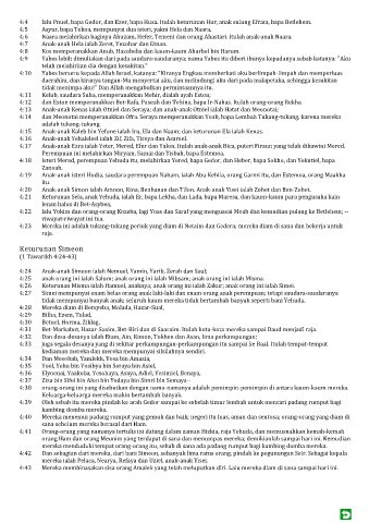 4:20 Anak-anak Simon ialah Amnon, Rina, Benhanan dan Tilon. Anak-anak Yisei ialah Zohet dan Ben-Zohet.