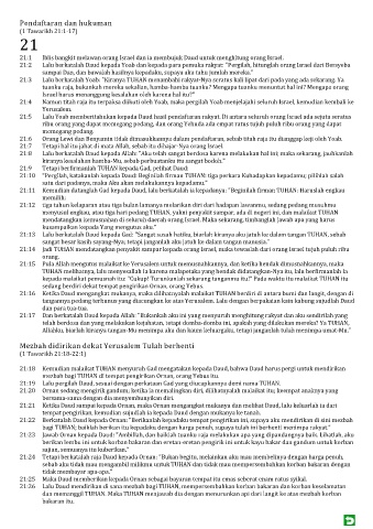 21:6 Orang Lewi dan Benyamin tidak dimasukkannya dalam pendaftaran, sebab titah raja itu dianggap keji oleh Yoab.