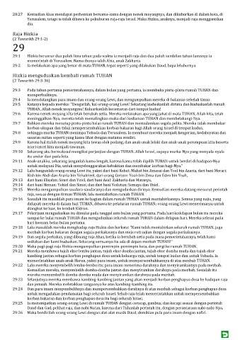 29:2 Ia melakukan apa yang benar di mata TUHAN, tepat seperti yang dilakukan Daud, bapa leluhurnya.