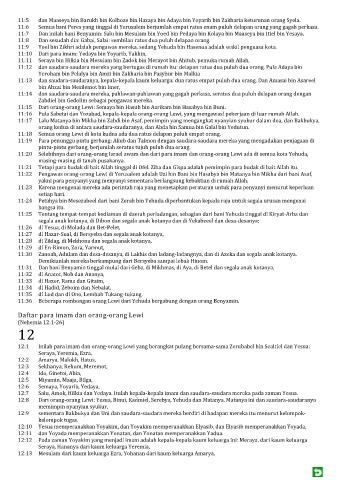 12:1 Inilah para imam dan orang-orang Lewi yang berangkat pulang bersama-sama Zerubabel bin Sealtiel dan Yesua:
