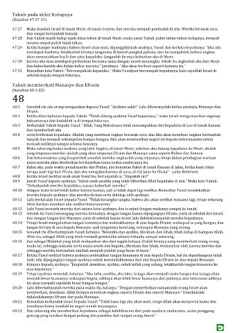 48:21 Kemudian berkatalah Israel kepada Yusuf: "Tidak lama lagi aku akan mati, tetapi Allah akan menyertai kamu dan