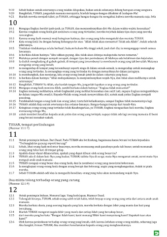 10:11 Ia berkata dalam hatinya: "Allah melupakannya; Ia menyembunyikan wajah-Nya, dan tidak akan melihatnya untuk