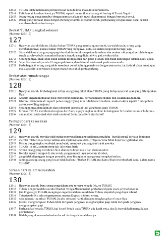 128:1 Nyanyian ziarah. Berbahagialah setiap orang yang takut akan TUHAN, yang hidup menurut jalan yang ditunjukkan-