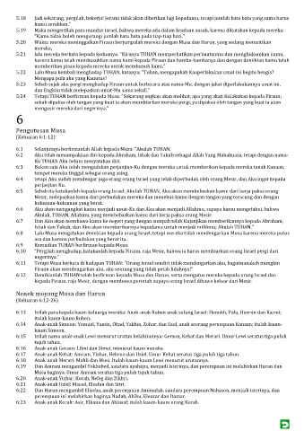 6:19 Dan Amram mengambil Yokhebed, saudara ayahnya, menjadi isterinya, dan perempuan ini melahirkan Harun dan