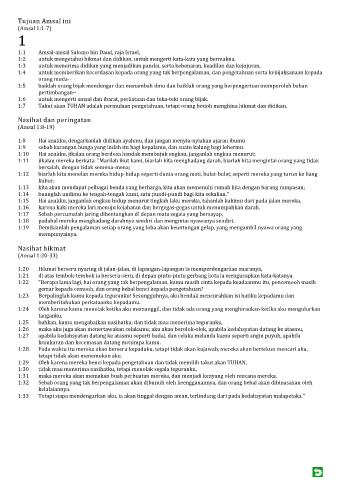1:3 untuk menerima didikan yang menjadikan pandai, serta kebenaran, keadilan dan kejujuran,