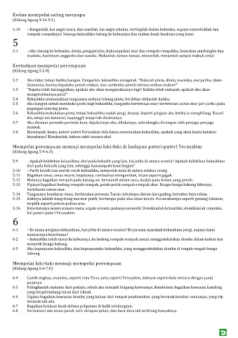 5:16 Kata-katanya manis semata-mata, segala sesuatu padanya menarik. Demikianlah kekasihku, demikianlah temanku,