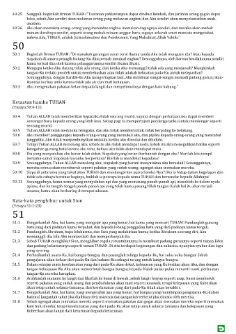 51:7 Dengarkanlah Aku, hai kamu yang mengetahui apa yang benar, hai bangsa yang menyimpan pengajaran-Ku dalam