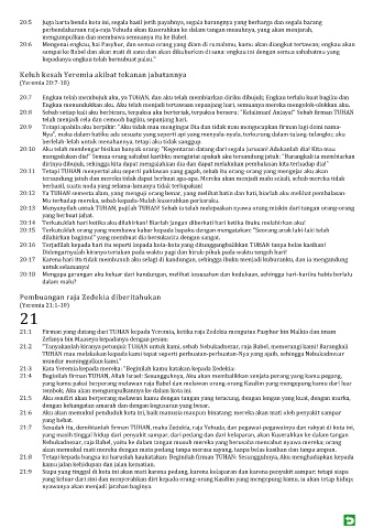 21:1 Firman yang datang dari TUHAN kepada Yeremia, ketika raja Zedekia mengutus Pasyhur bin Malkia dan imam