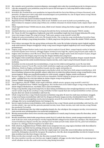 32:39 Aku akan memberi mereka satu hati dan satu tingkah langkah, sehingga mereka takut kepada-Ku sepanjang masa