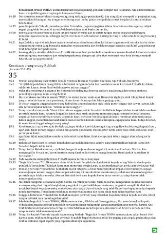 35:14 Memang perintah Yonadab bin Rekhab itu masih ditepati; ia telah memerintahkan kepada keturunannya, supaya
