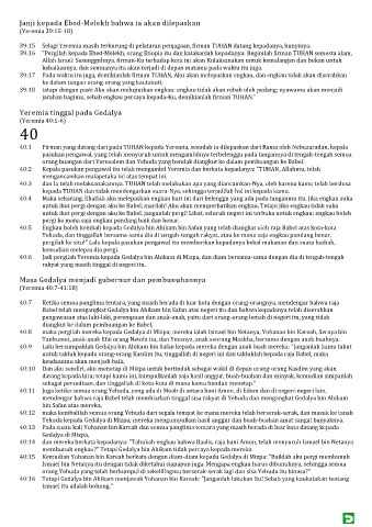 39:17 Pada waktu itu juga, demikianlah firman TUHAN, Aku akan melepaskan engkau, dan engkau tidak akan diserahkan