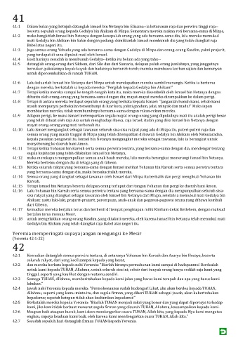 41:18 untuk mengelakkan orang-orang Kasdim, yang ditakuti mereka, oleh karena Ismael bin Netanya telah memukul mati