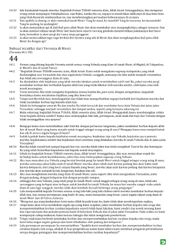 44:1 Firman yang datang kepada Yeremia untuk semua orang Yehuda yang diam di tanah Mesir, di Migdol, di Tahpanhes,