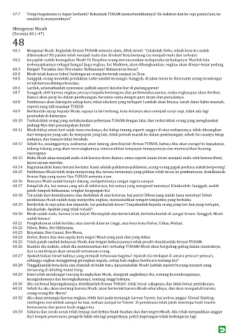 48:1 Mengenai Moab. Beginilah firman TUHAN semesta alam, Allah Israel: "Celakalah Nebo, sebab kota itu sudah