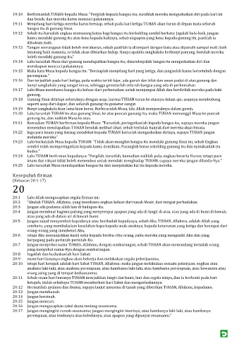 20:10 tetapi hari ketujuh adalah hari Sabat TUHAN, Allahmu; maka jangan melakukan sesuatu pekerjaan, engkau atau