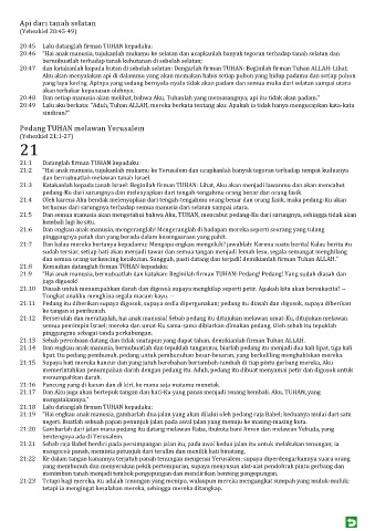 20:48 Dan setiap manusia akan melihat, bahwa Aku, Tuhanlah yang memasangnya; api itu tidak akan padam."