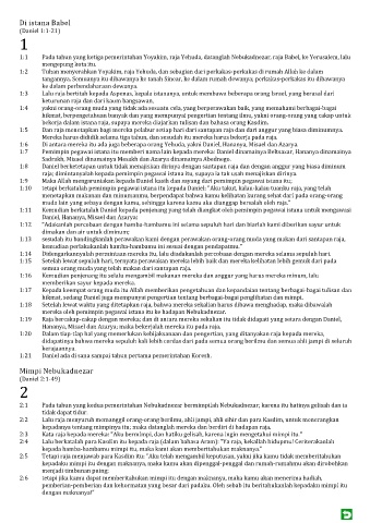 2:1 Pada tahun yang kedua pemerintahan Nebukadnezar bermimpilah Nebukadnezar; karena itu hatinya gelisah dan ia