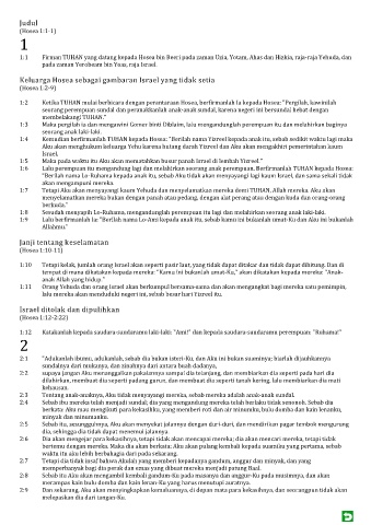 1:1 Firman TUHAN yang datang kepada Hosea bin Beeri pada zaman Uzia, Yotam, Ahas dan Hizkia, raja-raja Yehuda, dan