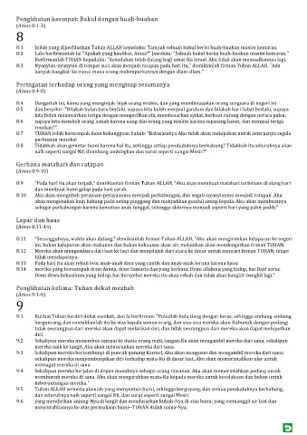 8:11 "Sesungguhnya, waktu akan datang," demikianlah firman Tuhan ALLAH, "Aku akan mengirimkan kelaparan ke negeri