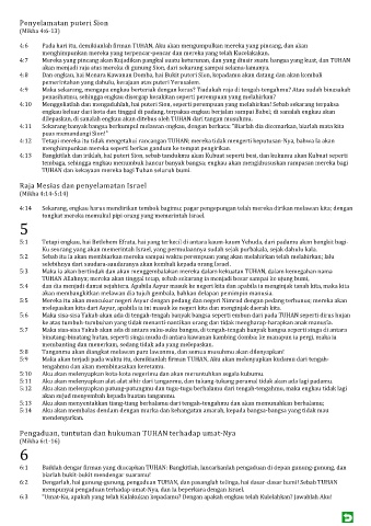 5:1 Tetapi engkau, hai Betlehem Efrata, hai yang terkecil di antara kaum-kaum Yehuda, dari padamu akan bangkit bagi-