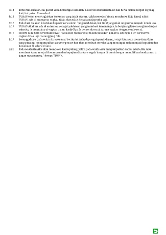 3:16 Pada hari itu akan dikatakan kepada Yerusalem: "Janganlah takut, hai Sion! Janganlah tanganmu menjadi lemah lesu.