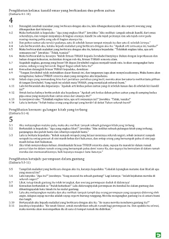 4:5 Maka berbicaralah malaikat yang berbicara dengan aku itu, katanya kepadaku: "Tidakkah engkau tahu, apa arti