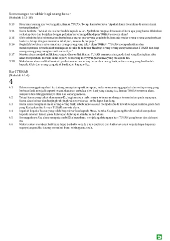 3:17 Mereka akan menjadi milik kesayangan-Ku sendiri, firman TUHAN semesta alam, pada hari yang Kusiapkan. Aku