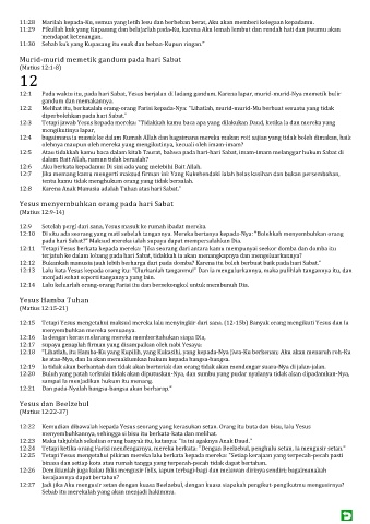 12:3 Tetapi jawab Yesus kepada mereka: "Tidakkah kamu baca apa yang dilakukan Daud, ketika ia dan mereka yang