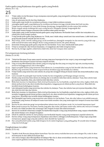 25:1 "Pada waktu itu hal Kerajaan Sorga seumpama sepuluh gadis, yang mengambil pelitanya dan pergi menyongsong