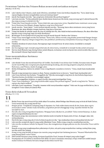 11:10 diberkatilah Kerajaan yang datang, Kerajaan bapak kita Daud, hosana di tempat yang maha tinggi!"