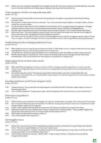 9:36 Ketika suara itu terdengar, nampaklah Yesus tinggal seorang diri. Dan murid-murid itu merahasiakannya, dan pada