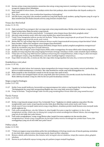 11:15 Tetapi ada di antara mereka yang berkata: "Ia mengusir setan dengan kuasa Beelzebul, penghulu setan."