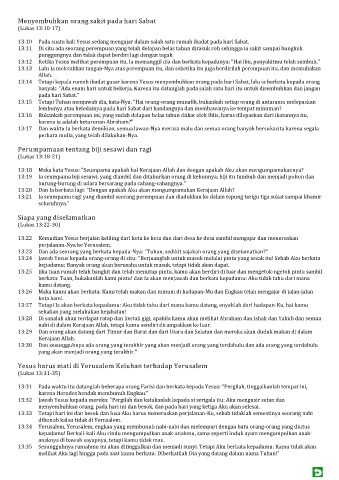 13:10 Pada suatu kali Yesus sedang mengajar dalam salah satu rumah ibadat pada hari Sabat.