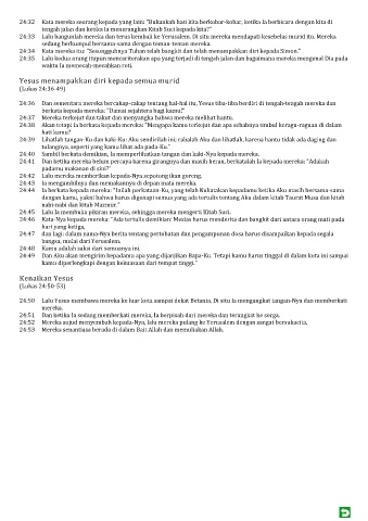 24:46 Kata-Nya kepada mereka: "Ada tertulis demikian: Mesias harus menderita dan bangkit dari antara orang mati pada
