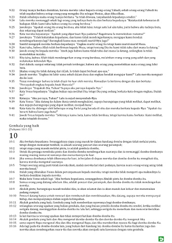 10:6 Itulah yang dikatakan Yesus dalam perumpamaan kepada mereka, tetapi mereka tidak mengerti apa maksudnya Ia