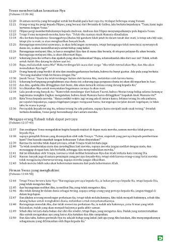 12:50 Dan Aku tahu, bahwa perintah-Nya itu adalah hidup yang kekal. Jadi apa yang Aku katakan, Aku menyampaikannya