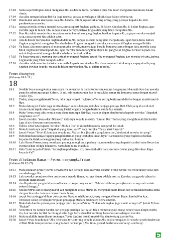 18:15 Simon Petrus dan seorang murid lain mengikuti Yesus. Murid itu mengenal Imam Besar dan ia masuk bersama-sama
